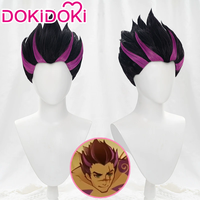 DokiDoki Game Genshin Impact Cosplay Yakshas Bosacius Fushe Wig Black Purple Hair Genshin Impact Marshal Vritras Cosplay Wig Men
